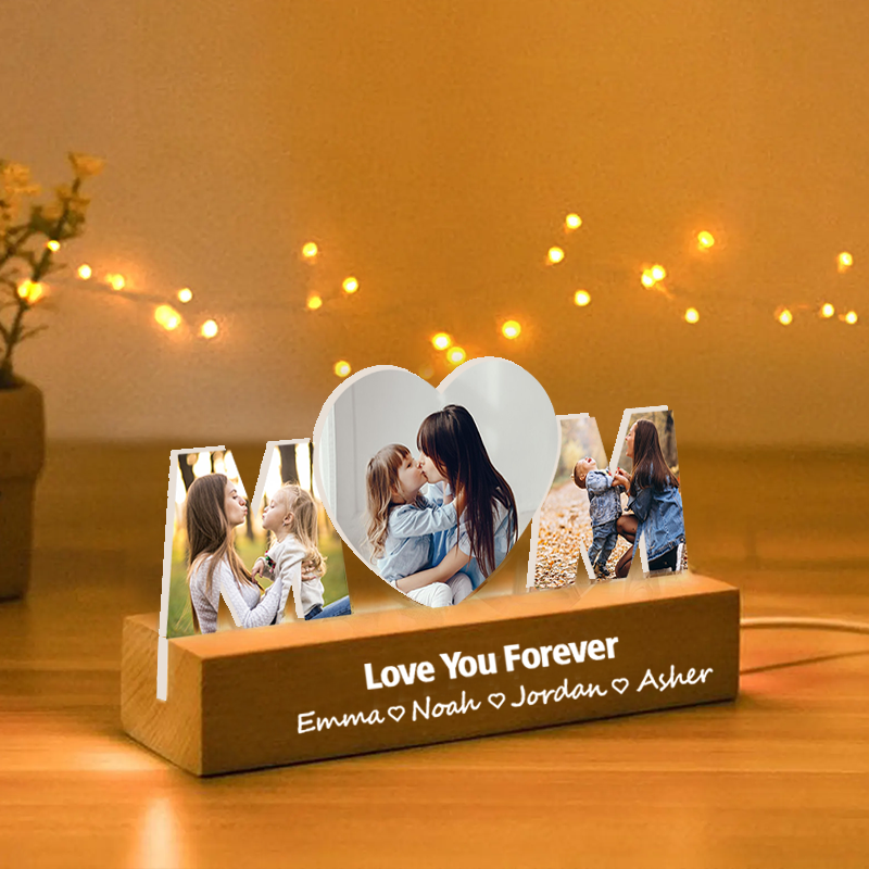 Custom Mom Photo Collage Night Light Personalised Text and Name LED Lamp Mother's Day Gift
