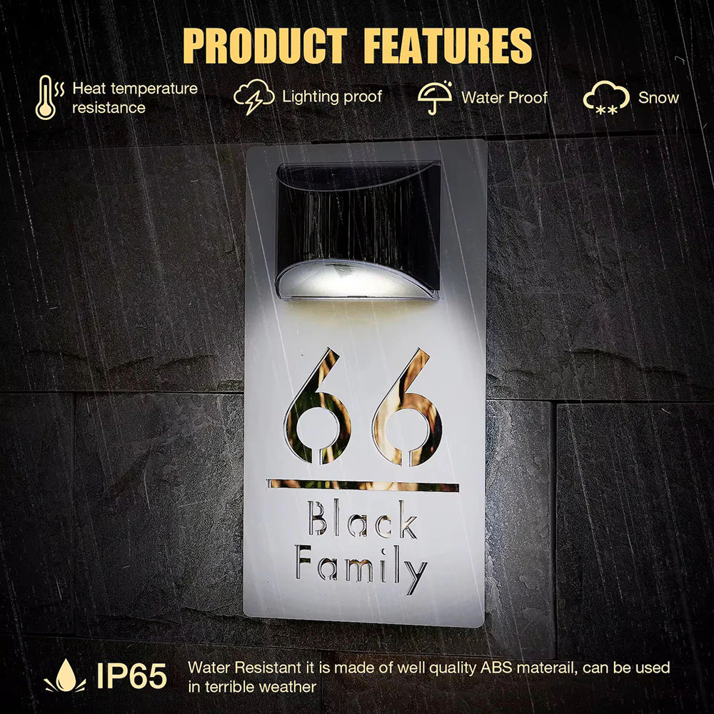 Custom Solar Illuminated Address Sign Outdoor LED House Number Plate Waterproof Door Plaque