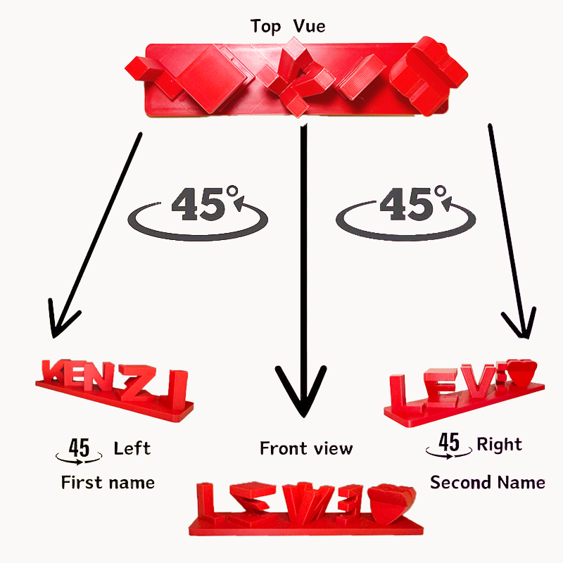 Personalised Dual Name Illusion Love 3D Printed Name Plate Double Sided Words Love Gifts