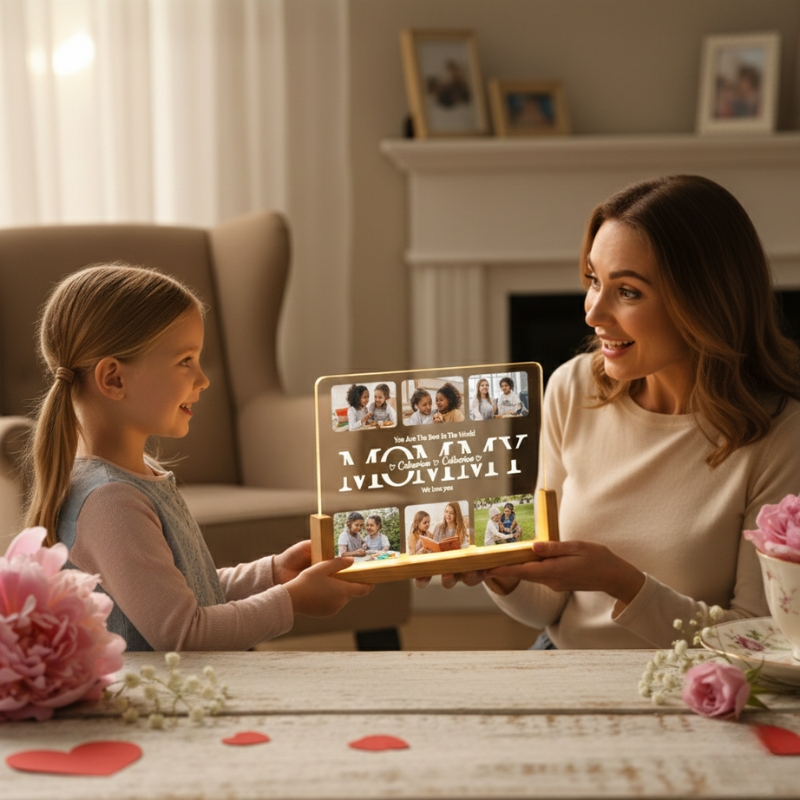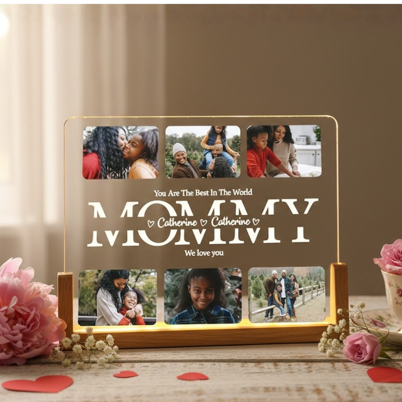 Personalised Mum LED Night Light with Custom Wooden Base Unique Mother's Day Gift from Daughter