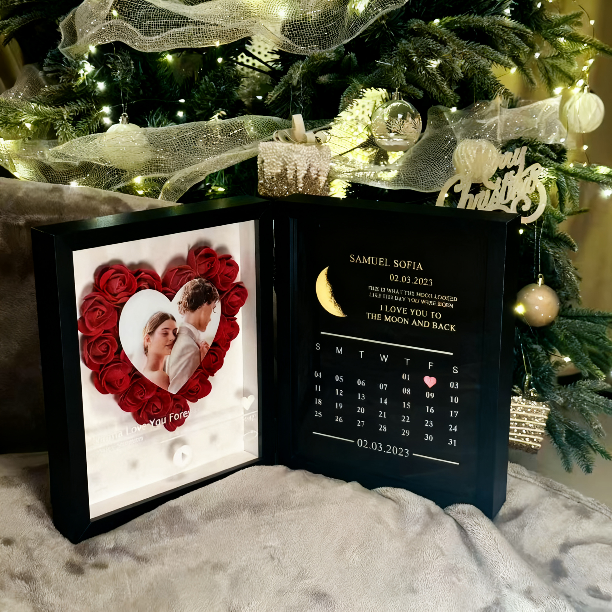 Personalised Photo Flower Shadow Music Box Moon Anniversary Gift