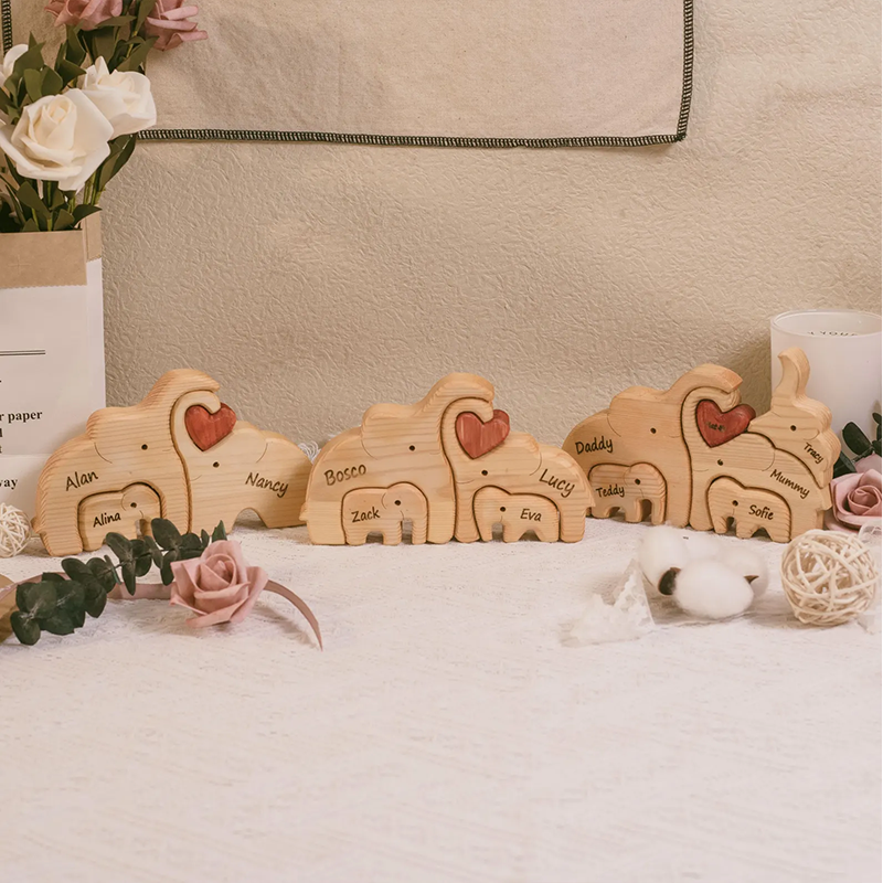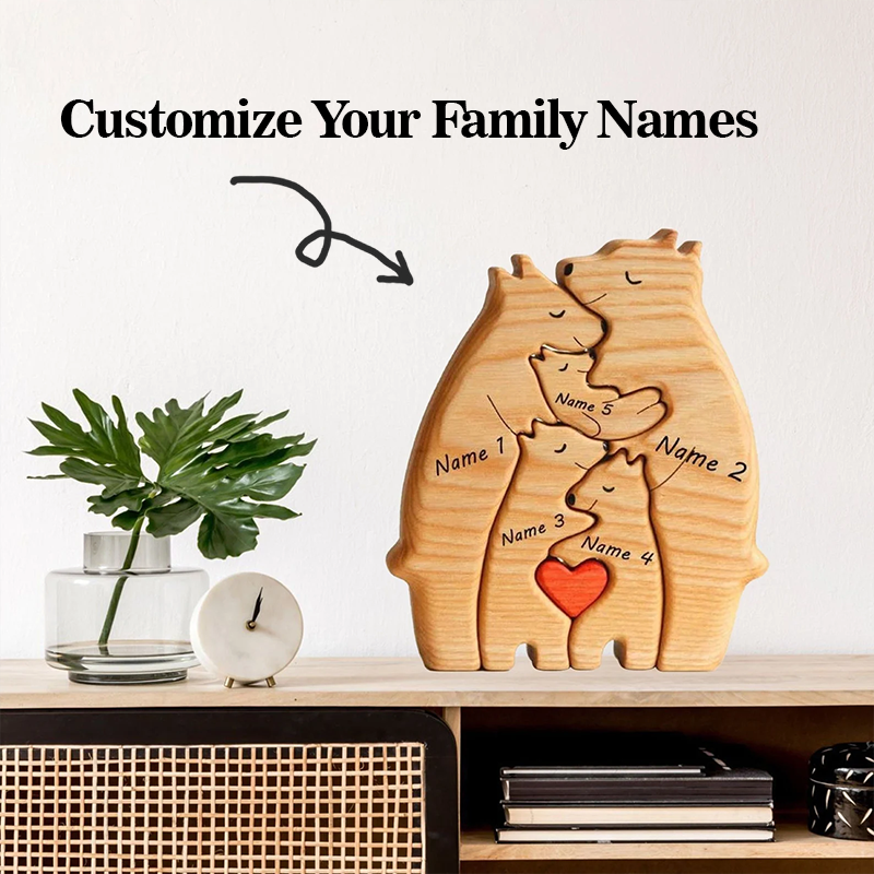 Personalised Wooden Bear Family Name Puzzle Engraved Wooden Custome Animal Family Gift for Parents & Kids
