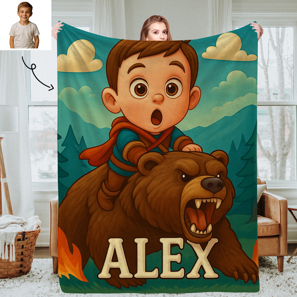 Sci Fi Theme Custom Cartoon Kids Blanket with Personalised Name and Photo Soft Throw for Bedroom or Reading Nook